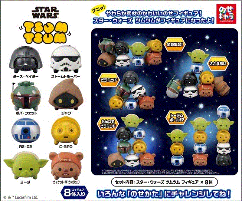 いろんな「のせかた」にチャレンジしてね!●セット内容:のせフィギュア全8体(ダース・ベイダー、ストームトルーパー、ボバ・フェット、ジャワ、R2-D2、C-3PO、ヨーダ、ウィケット・W・ウォリック)●素材:PVC●フィギュアサイズ:約H25×W25×D38mm●対象年齢:12歳以上 メーカー (株)エンスカイ 発売日 2017年12月09日 備考 ※画像はイメージです。
