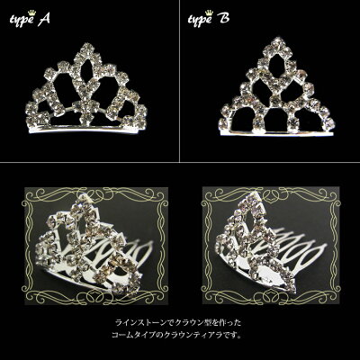 ラインストーン付きクラウンティアラコーム /きらきら,ヘアアクセサリー,髪飾り,ヘアコーム,王冠,卒業式,成人式,結婚式,パーティ【ゆうパケット対応】[M便1/30]