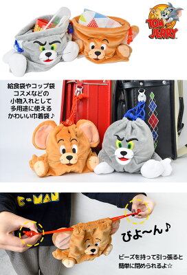 トムとジェリー グッズ かわいい おしゃれ ぬいぐるみ巾着 小物入れ 給食袋 コップ袋 巾着袋 巾着バッグ 巾着 ポーチ ぬいぐるみ 小 目立つ 高校生 小学生 中学生 Tom&Jerry きんちゃく 袋 ちいさめ トム ジェリー プレゼント 贈り物 お揃い ビーズ付き 可愛い 子供 大人